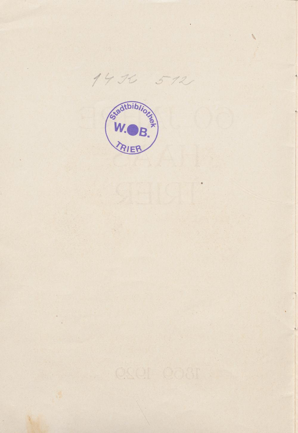 60 Jahre Haas Trier : 1869 - 1929