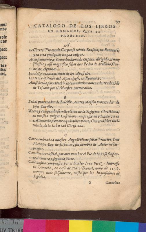 CATALOGO DE LOS LIBROS EN ROMANCE, QVE SE PROHIBEN.