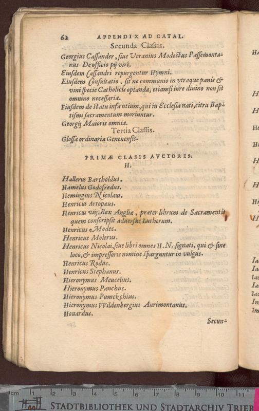 APPENDIX, INDICI SAC. CONC. TRIDENT. LIBRORVM. PROHIbitorum adiuncta, ex mandato Philippi Regis Catholici, & illustriss. Ducis Albani, Gubernatoris. &c. in suas classes diuisa.