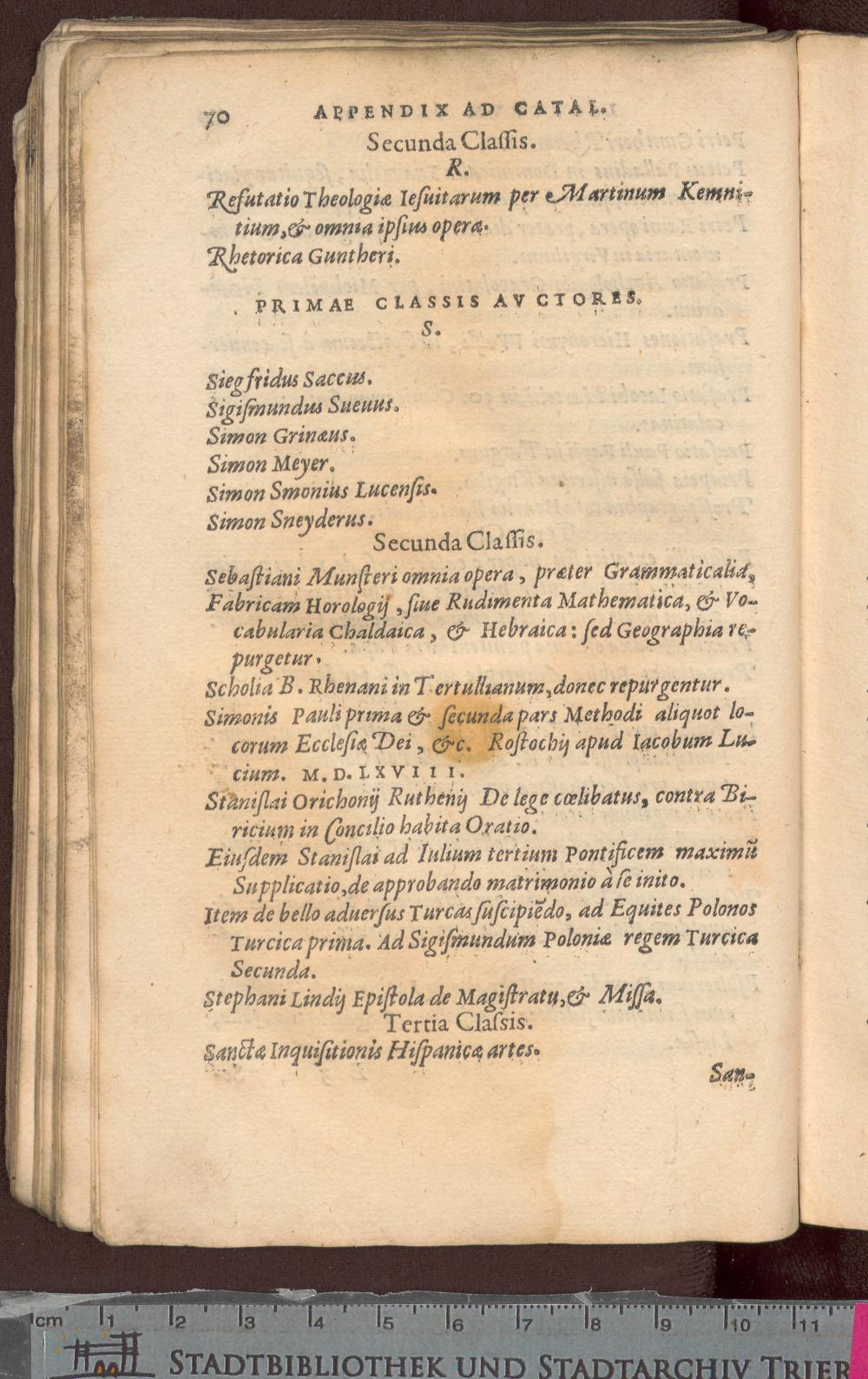 APPENDIX, INDICI SAC. CONC. TRIDENT. LIBRORVM. PROHIbitorum adiuncta, ex mandato Philippi Regis Catholici, & illustriss. Ducis Albani, Gubernatoris. &c. in suas classes diuisa.