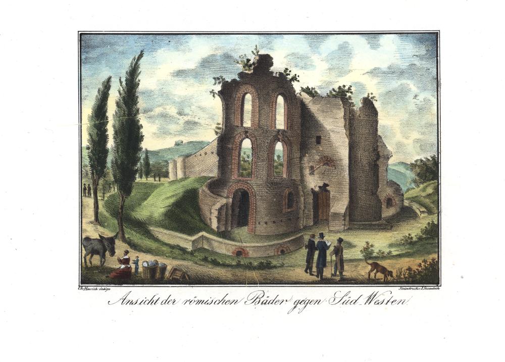 Ansicht der römischen Bäder gegen Süd-Westen / Steindruck v. J. Susenbeth