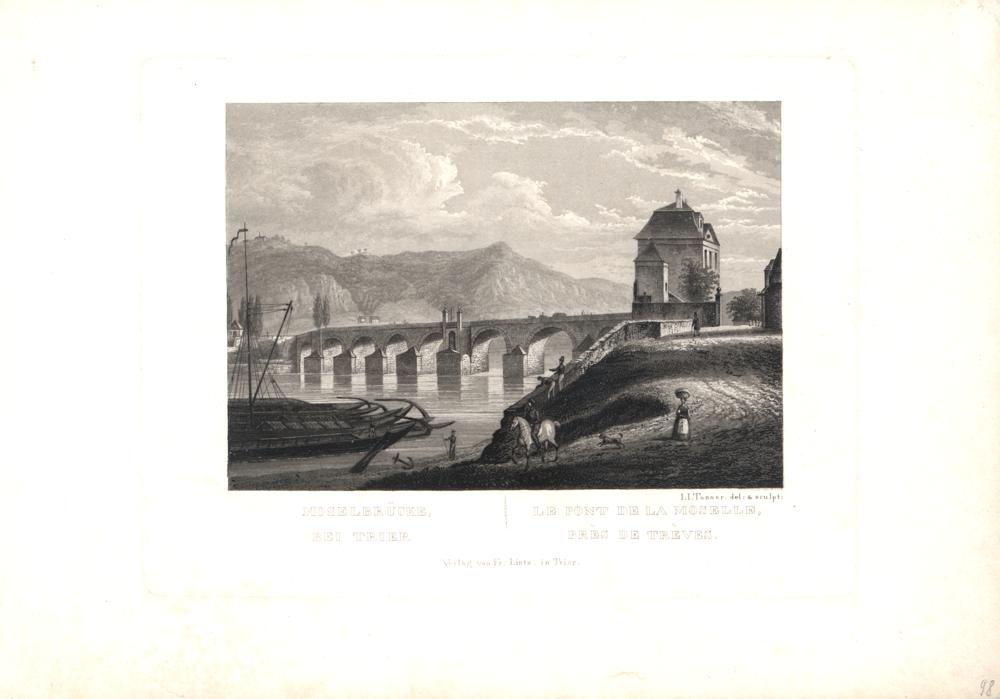 [Römerbrücke in Trier] : Moselbrücke, bei Trier - Le pont de la Moselle, près de Trèves / J. J. Tanner del. & sculpt.