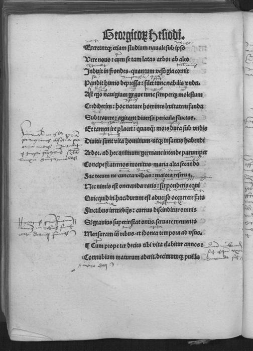 Hesiodi poete Ge||org corũ liber [pro] Nicolaũ de Valle conuersus e greco || in latinũ.||