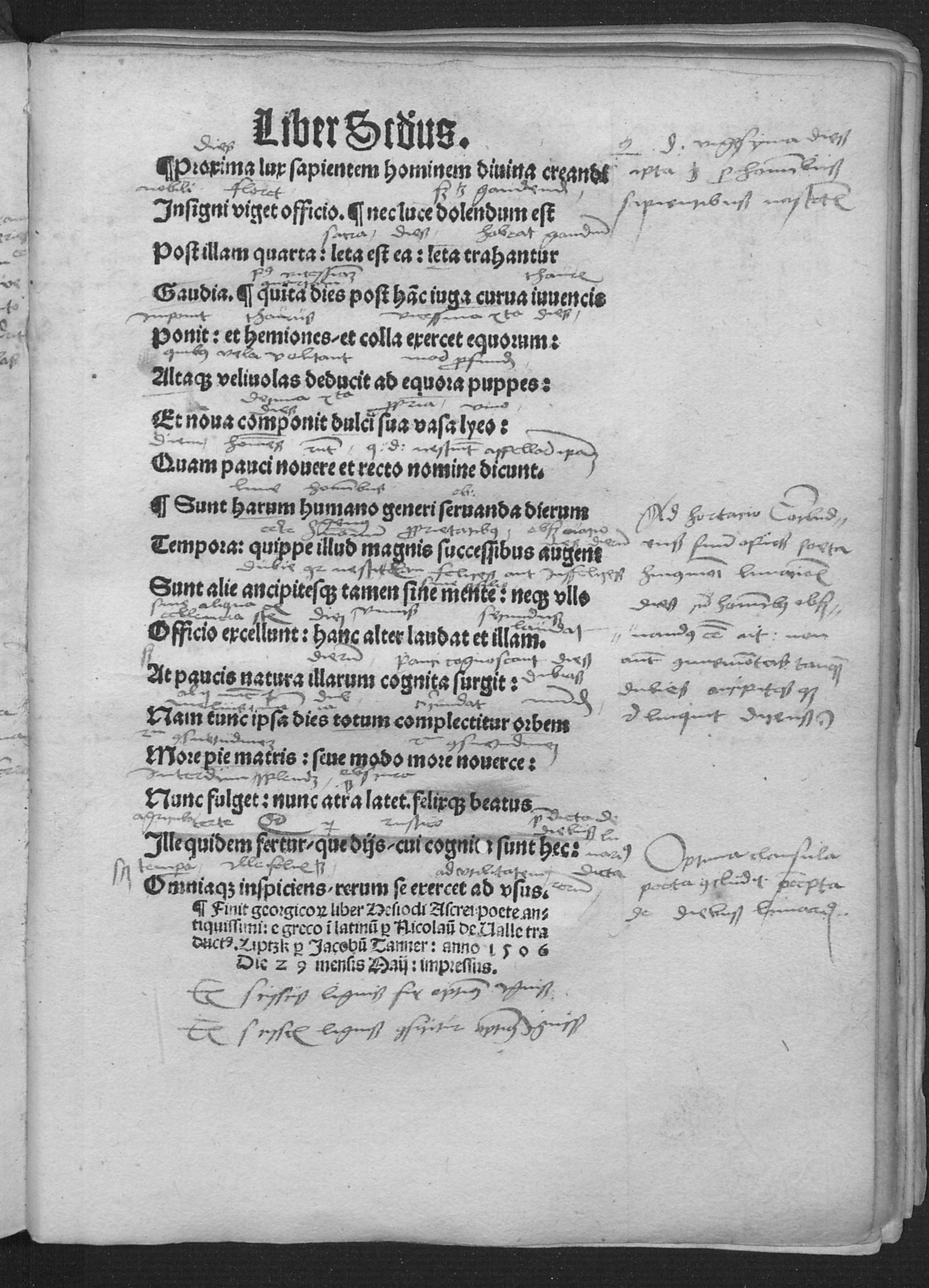 Hesiodi poete Ge||org corũ liber [pro] Nicolaũ de Valle conuersus e greco || in latinũ.||