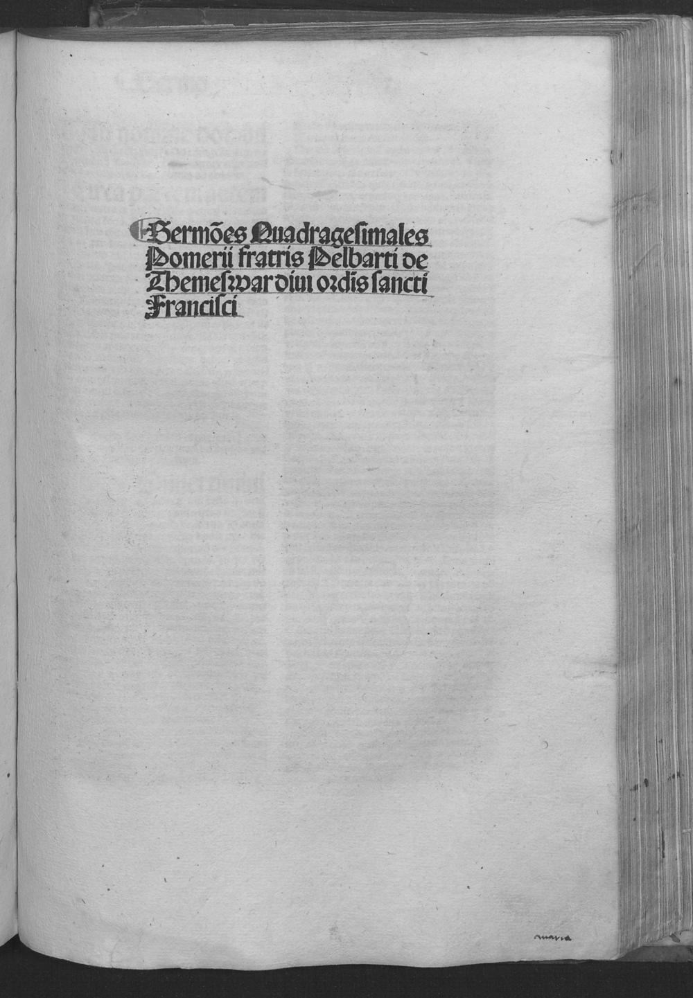Sermones quadragesimales pomerii fratris Pelbarti de Themeswar diui ordĩs sancti Francisci