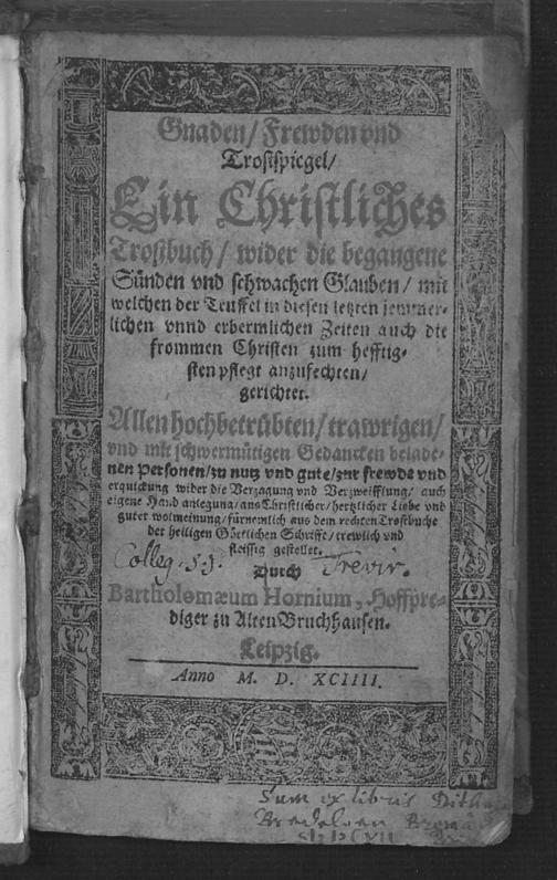 Gnaden., Frewden und Trostspiegel : ein christliches Trostbuch / ... gestellet durch Bartholomaeum Hornium