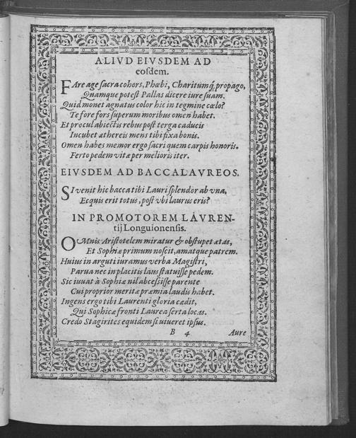 Epigrammata, quibus eruditae iuventuti in Catholica Trevirorum Academia partim prima partim suprema philosophiae laurea insignitae tertio idus Iulias anno 1594, logices in eadem universitate studiosi gratulantur