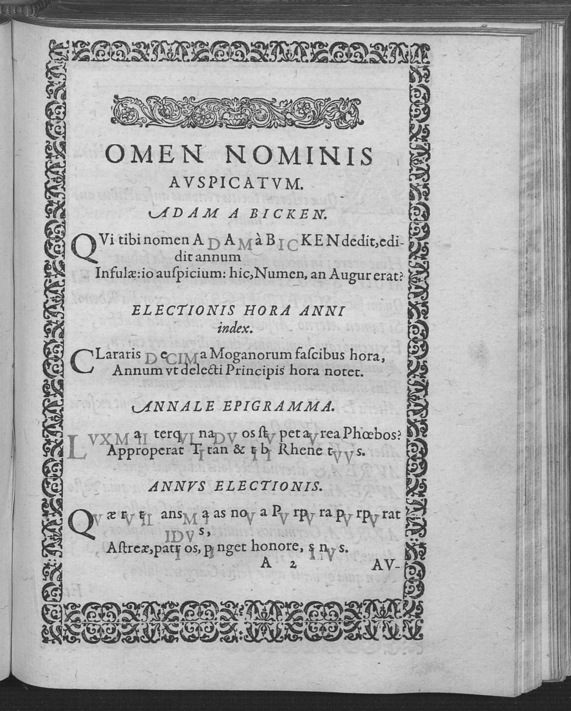 Reverendiss. Et Illvstriss. Principi Ac Domino, D. Ioanni Adamo Electo Archiepiscopo S. Sedis Mogvntinae, Sacri Romani Imperii Per Germaniam Archicancellario Principi Electori, Domino suo Clementissimo, ... Collegium Societatis Iesv Moguntiae gratulabatur : [Glückwünsche des Jesuitenkollegs zur Wahl von Johann Adam von Bicken, Erzbischof und Kurfürst von Mainz am 13. April 1601] / Collegium Societatis Iesu Moguntiae gratulabatur