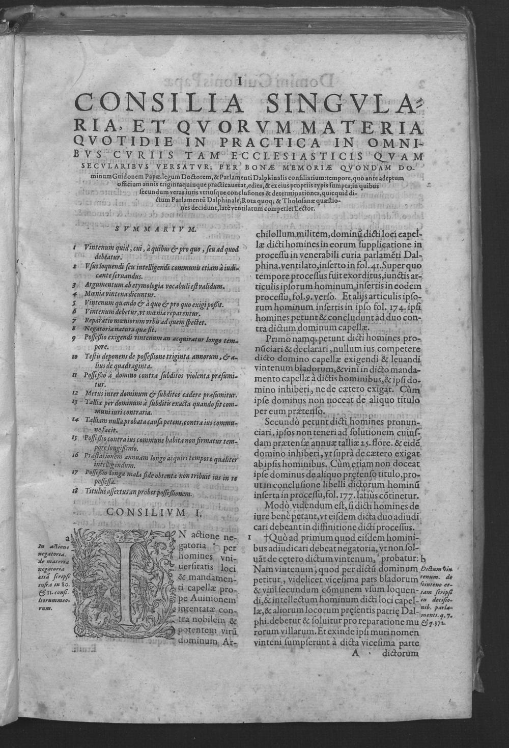 Consiliorum Guidonis Papae volumen integrum : controversiis tam canonicis quam civilibus ... pertractis, & conclusionibus, cum in Delphinali, tum in Tholosano perlamento discussis, refertum