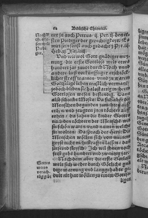 Biblische Chronica : DArinn die fürtrefliche Geschicht der heiligen Patriarchen/ Propheten/ Hohen Priester/ Fürsten/ Richter/ vnd Könige des hauses Juda vnnd Israel/ Auch allerley merckliche Historien/ nit allein ordenlich verfaßt/ sonder auch kürtzlich erklärt werden ... / Caspar Goltwurm Athesinus