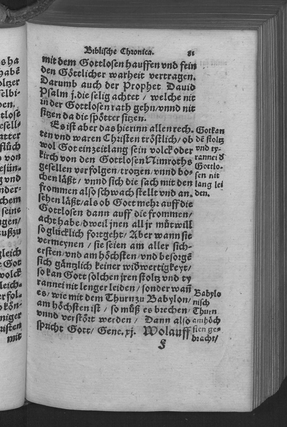 Biblische Chronica : DArinn die fürtrefliche Geschicht der heiligen Patriarchen/ Propheten/ Hohen Priester/ Fürsten/ Richter/ vnd Könige des hauses Juda vnnd Israel/ Auch allerley merckliche Historien/ nit allein ordenlich verfaßt/ sonder auch kürtzlich erklärt werden ... / Caspar Goltwurm Athesinus