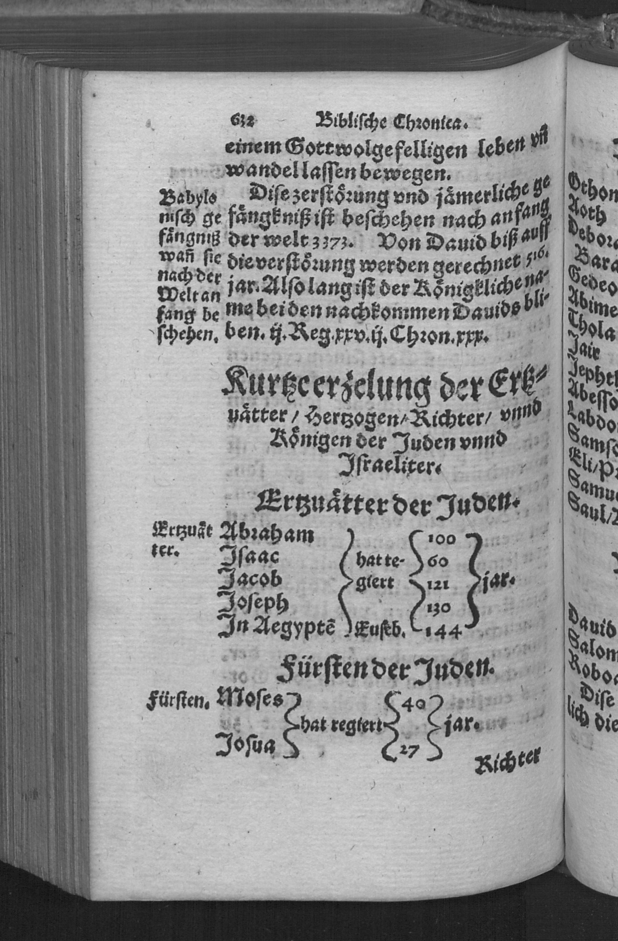 Biblische Chronica : DArinn die fürtrefliche Geschicht der heiligen Patriarchen/ Propheten/ Hohen Priester/ Fürsten/ Richter/ vnd Könige des hauses Juda vnnd Israel/ Auch allerley merckliche Historien/ nit allein ordenlich verfaßt/ sonder auch kürtzlich erklärt werden ... / Caspar Goltwurm Athesinus