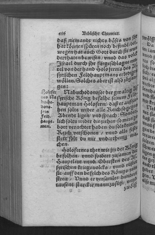 Biblische Chronica : DArinn die fürtrefliche Geschicht der heiligen Patriarchen/ Propheten/ Hohen Priester/ Fürsten/ Richter/ vnd Könige des hauses Juda vnnd Israel/ Auch allerley merckliche Historien/ nit allein ordenlich verfaßt/ sonder auch kürtzlich erklärt werden ... / Caspar Goltwurm Athesinus