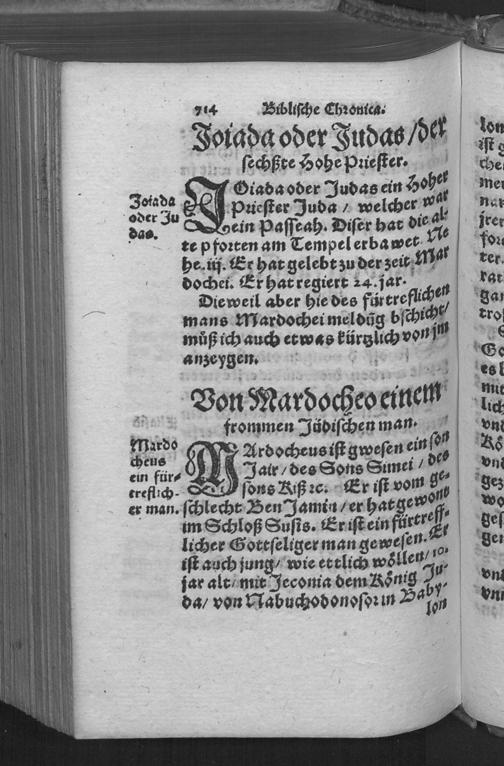 Biblische Chronica : DArinn die fürtrefliche Geschicht der heiligen Patriarchen/ Propheten/ Hohen Priester/ Fürsten/ Richter/ vnd Könige des hauses Juda vnnd Israel/ Auch allerley merckliche Historien/ nit allein ordenlich verfaßt/ sonder auch kürtzlich erklärt werden ... / Caspar Goltwurm Athesinus