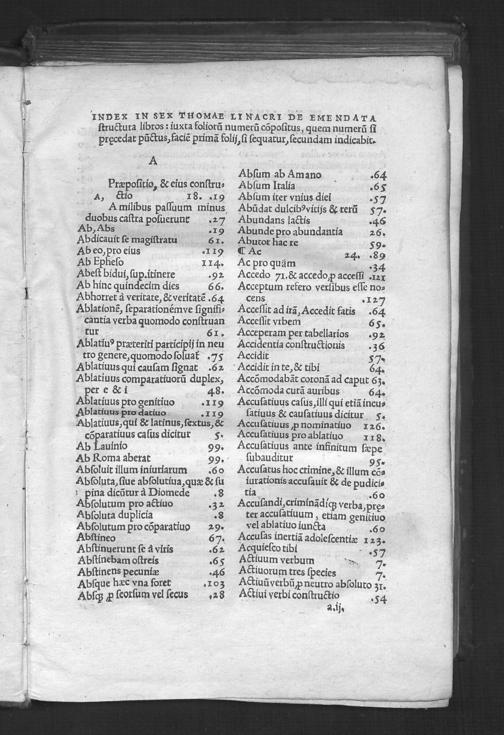 Index in sex Thomae Linacri de emendata structura libros