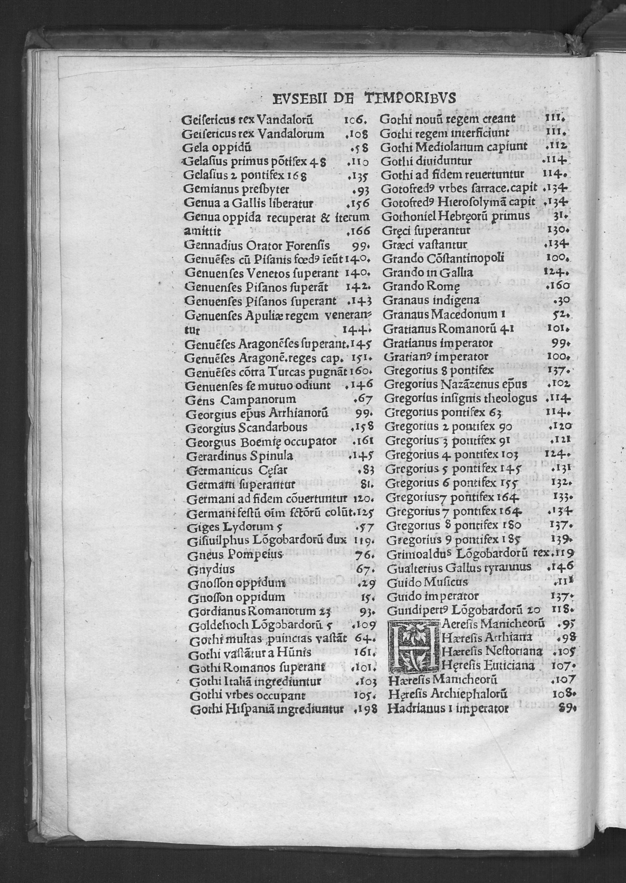 Evsebii Caesarie[n]sis Episcopi Chronico[n] / quod Hieronymus presbyter diuino eius ingenio Latinum facere curauit & vsq[ue] in Vale[n]te[m] Caesarem Romano adiecit eloquio. Ad que[m] & Prosper & Matthaeus Palmerius & Matthias Palmerius co[m]plures addidere, quibus demum nonnulla ad haec vsq[ue] tempora subsecuta adiecta sunt