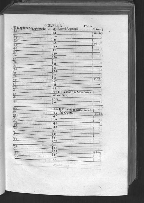 Evsebii Caesarie[n]sis Episcopi Chronico[n] / quod Hieronymus presbyter diuino eius ingenio Latinum facere curauit & vsq[ue] in Vale[n]te[m] Caesarem Romano adiecit eloquio. Ad que[m] & Prosper & Matthaeus Palmerius & Matthias Palmerius co[m]plures addidere, quibus demum nonnulla ad haec vsq[ue] tempora subsecuta adiecta sunt