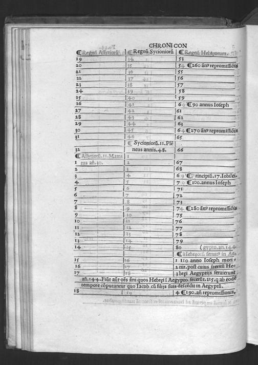 Evsebii Caesarie[n]sis Episcopi Chronico[n] / quod Hieronymus presbyter diuino eius ingenio Latinum facere curauit & vsq[ue] in Vale[n]te[m] Caesarem Romano adiecit eloquio. Ad que[m] & Prosper & Matthaeus Palmerius & Matthias Palmerius co[m]plures addidere, quibus demum nonnulla ad haec vsq[ue] tempora subsecuta adiecta sunt