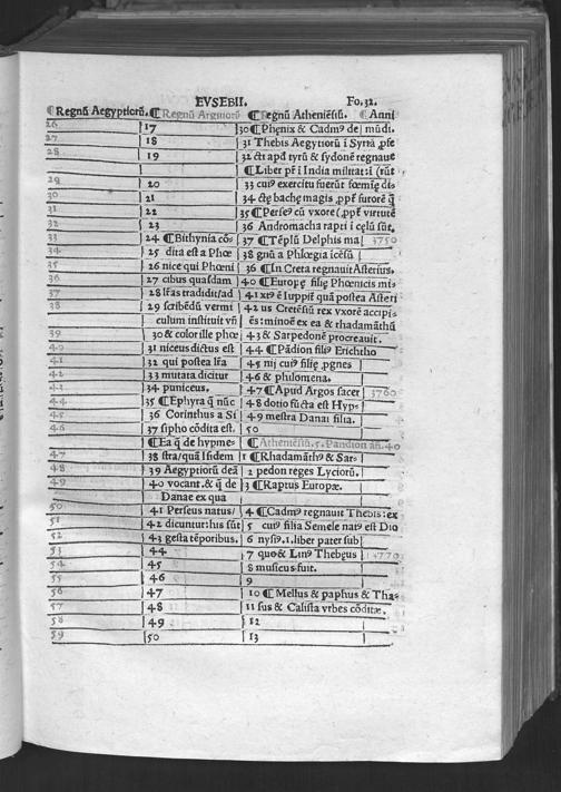Evsebii Caesarie[n]sis Episcopi Chronico[n] / quod Hieronymus presbyter diuino eius ingenio Latinum facere curauit & vsq[ue] in Vale[n]te[m] Caesarem Romano adiecit eloquio. Ad que[m] & Prosper & Matthaeus Palmerius & Matthias Palmerius co[m]plures addidere, quibus demum nonnulla ad haec vsq[ue] tempora subsecuta adiecta sunt