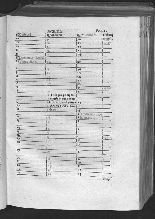 Evsebii Caesarie[n]sis Episcopi Chronico[n] / quod Hieronymus presbyter diuino eius ingenio Latinum facere curauit & vsq[ue] in Vale[n]te[m] Caesarem Romano adiecit eloquio. Ad que[m] & Prosper & Matthaeus Palmerius & Matthias Palmerius co[m]plures addidere, quibus demum nonnulla ad haec vsq[ue] tempora subsecuta adiecta sunt