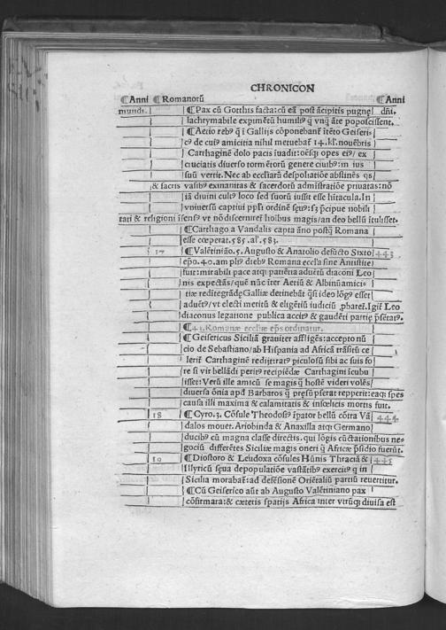 Evsebii Caesarie[n]sis Episcopi Chronico[n] / quod Hieronymus presbyter diuino eius ingenio Latinum facere curauit & vsq[ue] in Vale[n]te[m] Caesarem Romano adiecit eloquio. Ad que[m] & Prosper & Matthaeus Palmerius & Matthias Palmerius co[m]plures addidere, quibus demum nonnulla ad haec vsq[ue] tempora subsecuta adiecta sunt