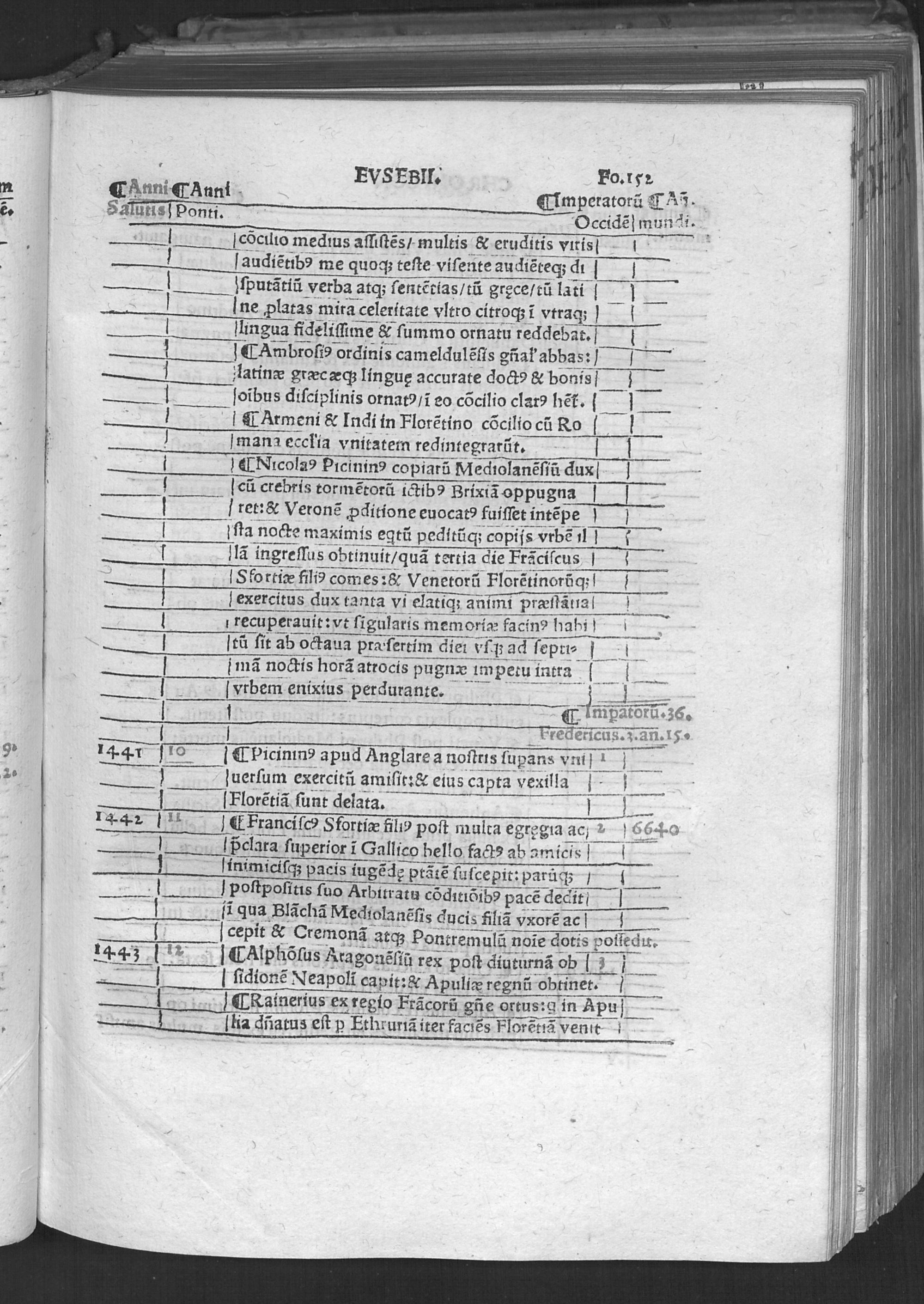 Evsebii Caesarie[n]sis Episcopi Chronico[n] / quod Hieronymus presbyter diuino eius ingenio Latinum facere curauit & vsq[ue] in Vale[n]te[m] Caesarem Romano adiecit eloquio. Ad que[m] & Prosper & Matthaeus Palmerius & Matthias Palmerius co[m]plures addidere, quibus demum nonnulla ad haec vsq[ue] tempora subsecuta adiecta sunt
