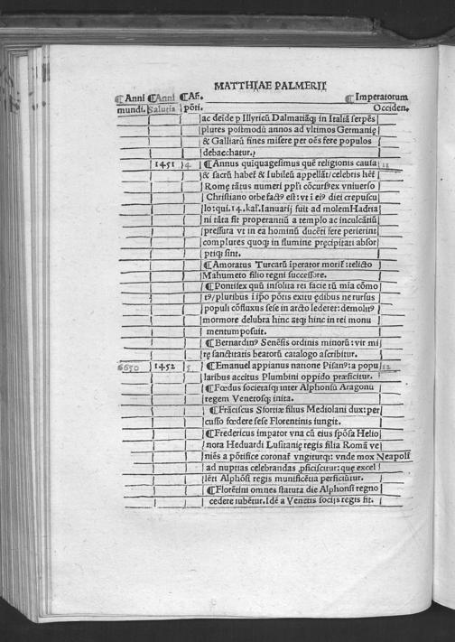 Evsebii Caesarie[n]sis Episcopi Chronico[n] / quod Hieronymus presbyter diuino eius ingenio Latinum facere curauit & vsq[ue] in Vale[n]te[m] Caesarem Romano adiecit eloquio. Ad que[m] & Prosper & Matthaeus Palmerius & Matthias Palmerius co[m]plures addidere, quibus demum nonnulla ad haec vsq[ue] tempora subsecuta adiecta sunt