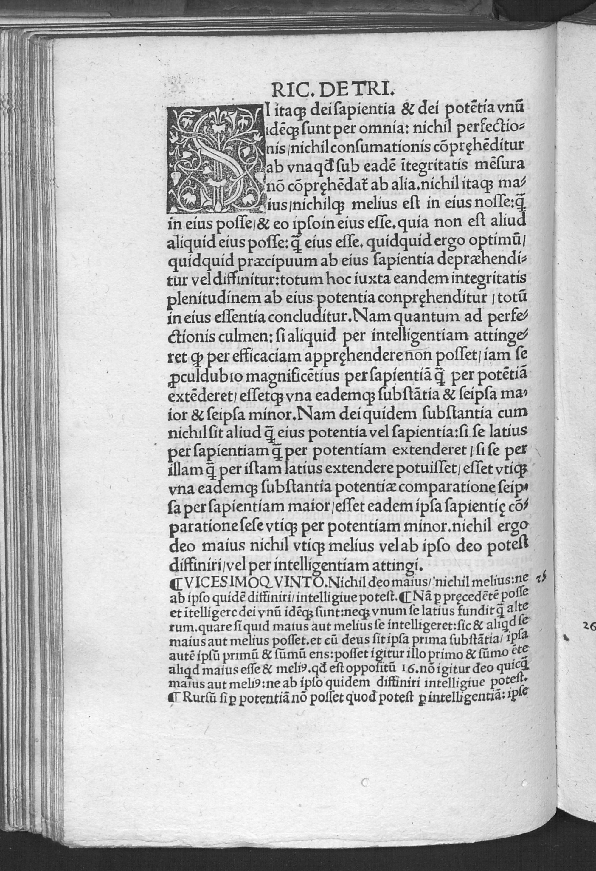 Egregii Patris Et Clari theologi Ricardi quondam deuoti cœnobitæ sancti victoris iuxta muros parisienses de superdiuina Trinitate theologicu[m] opus Hexade libroru[m] distinctu[m] Et Capitvm XV Decadibvs