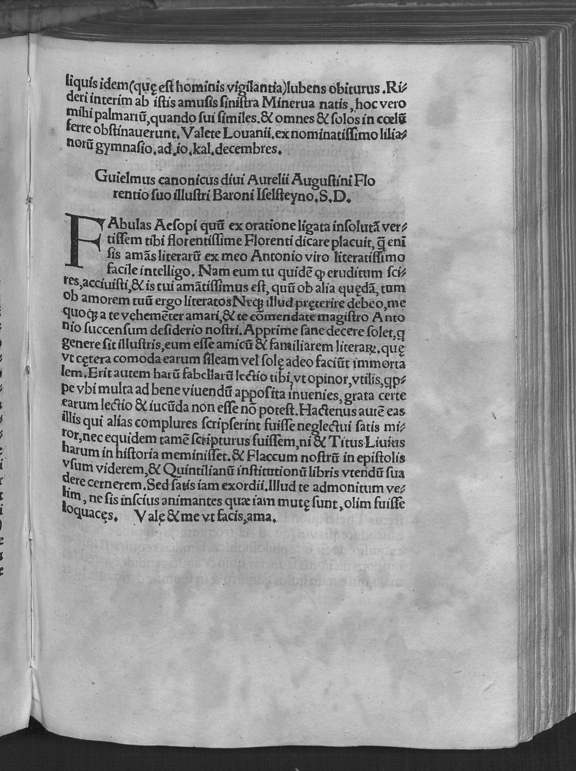 Guielmus canonicus divi Aurelii Augustini Florentio suo illustri Baroni Iselstey...