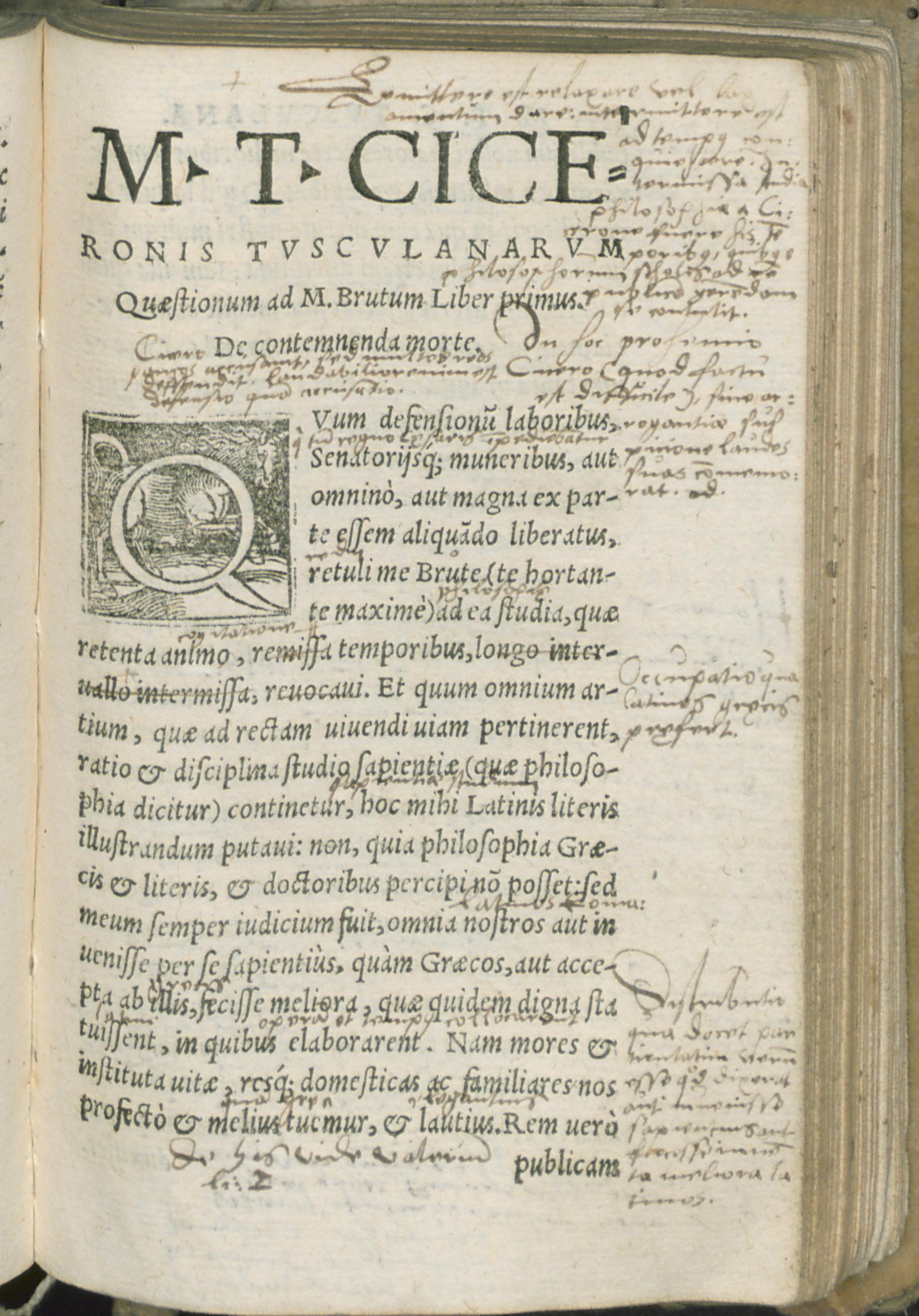 M. T. Ciceronis Tusculanarum Quaestionum ad M. Brutum Liber primus.