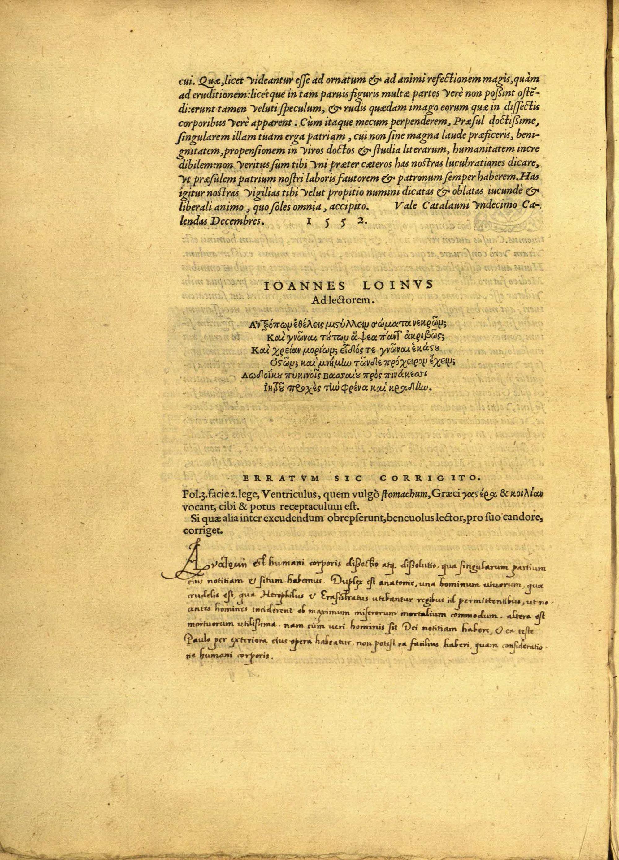 Joannes Loinus ad lectorm ; Errata