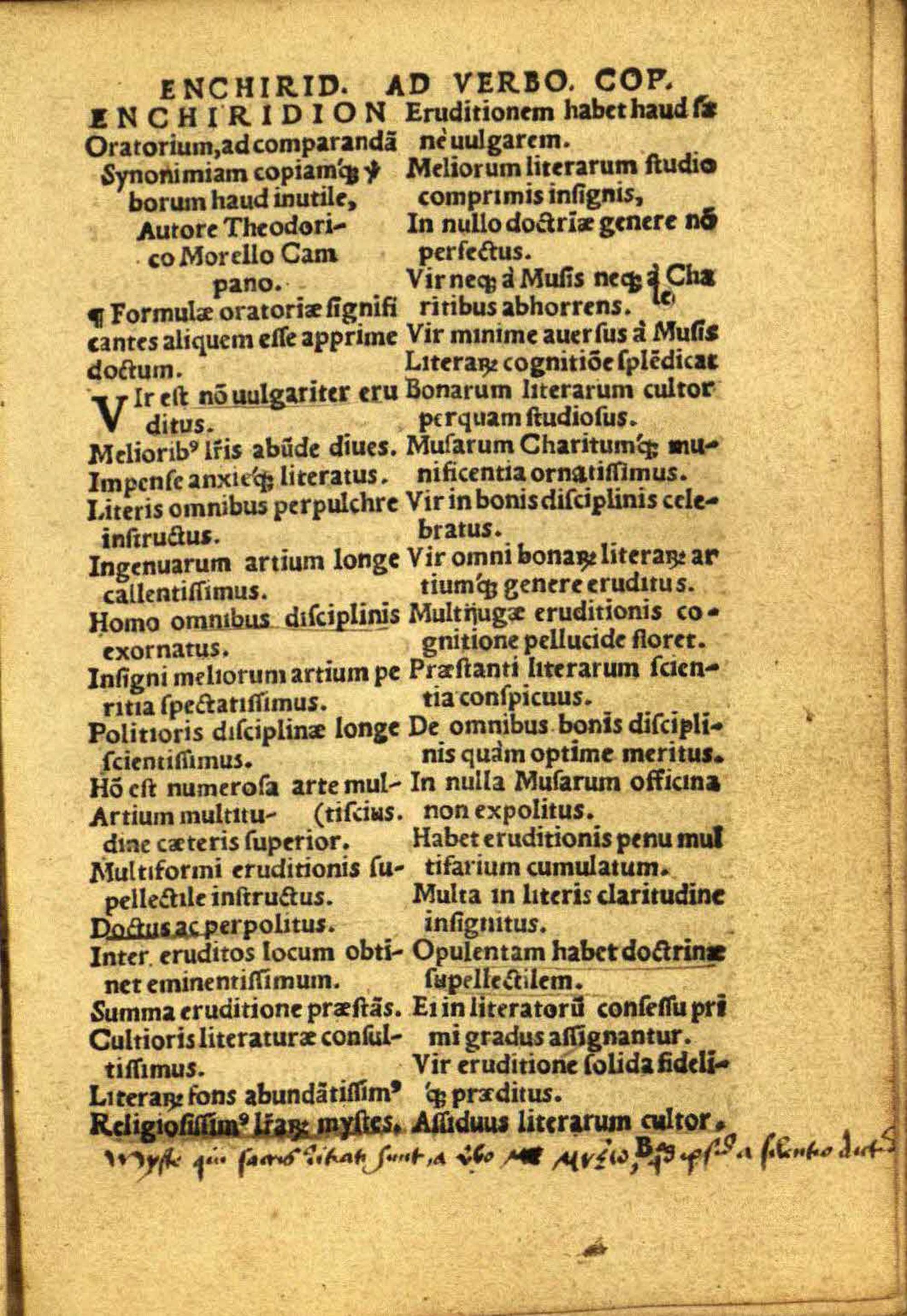 Enchiridion ad verborum copiam haud infrugiferum : multo quam antea auctius emaculatiusque / Theodorico Morello Campano autore