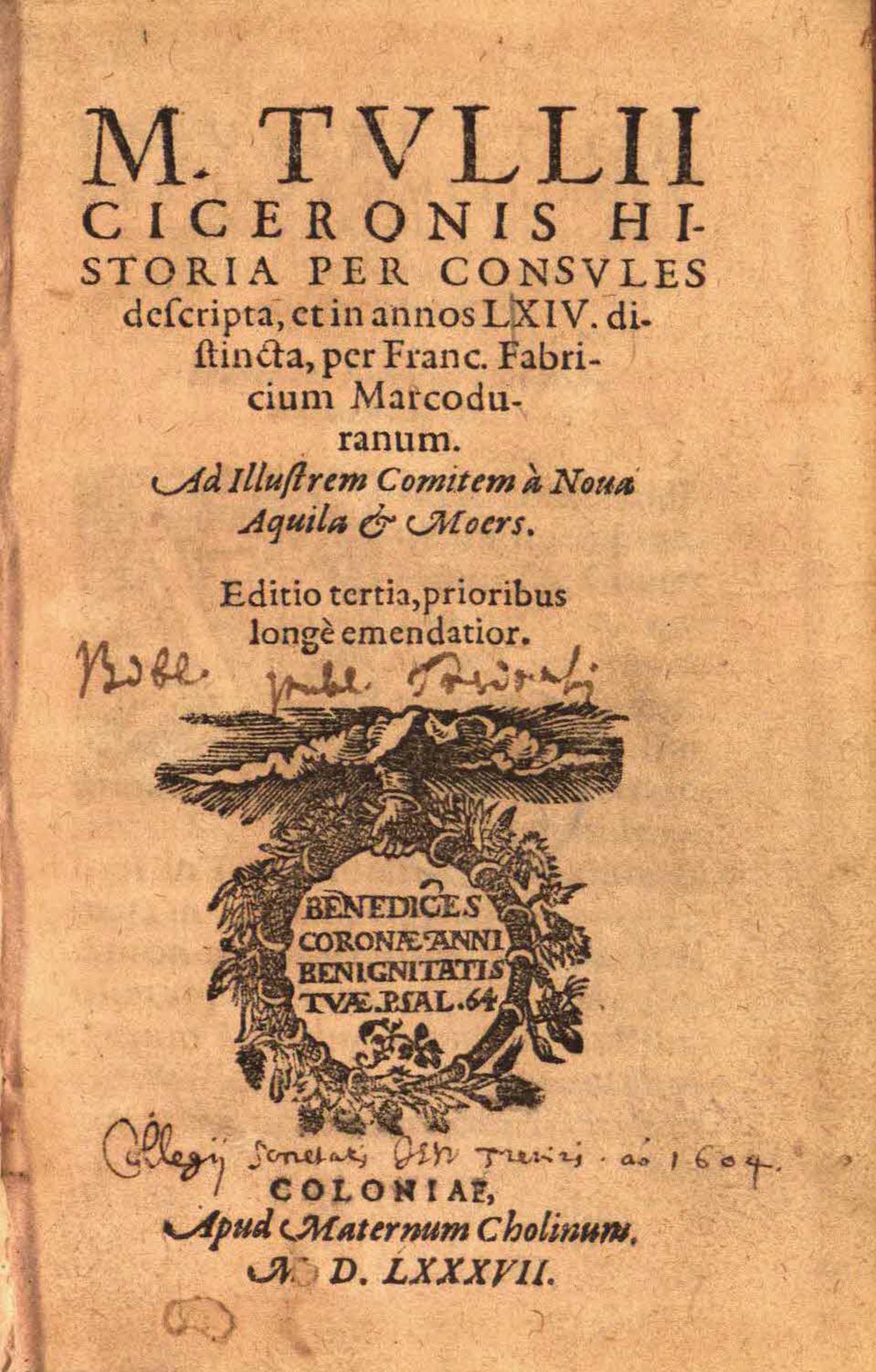 M. Tullii Ciceronis historia, per consules descripta, et in annos LXIV distincta / per Franc. Fabricium Marcoduranum