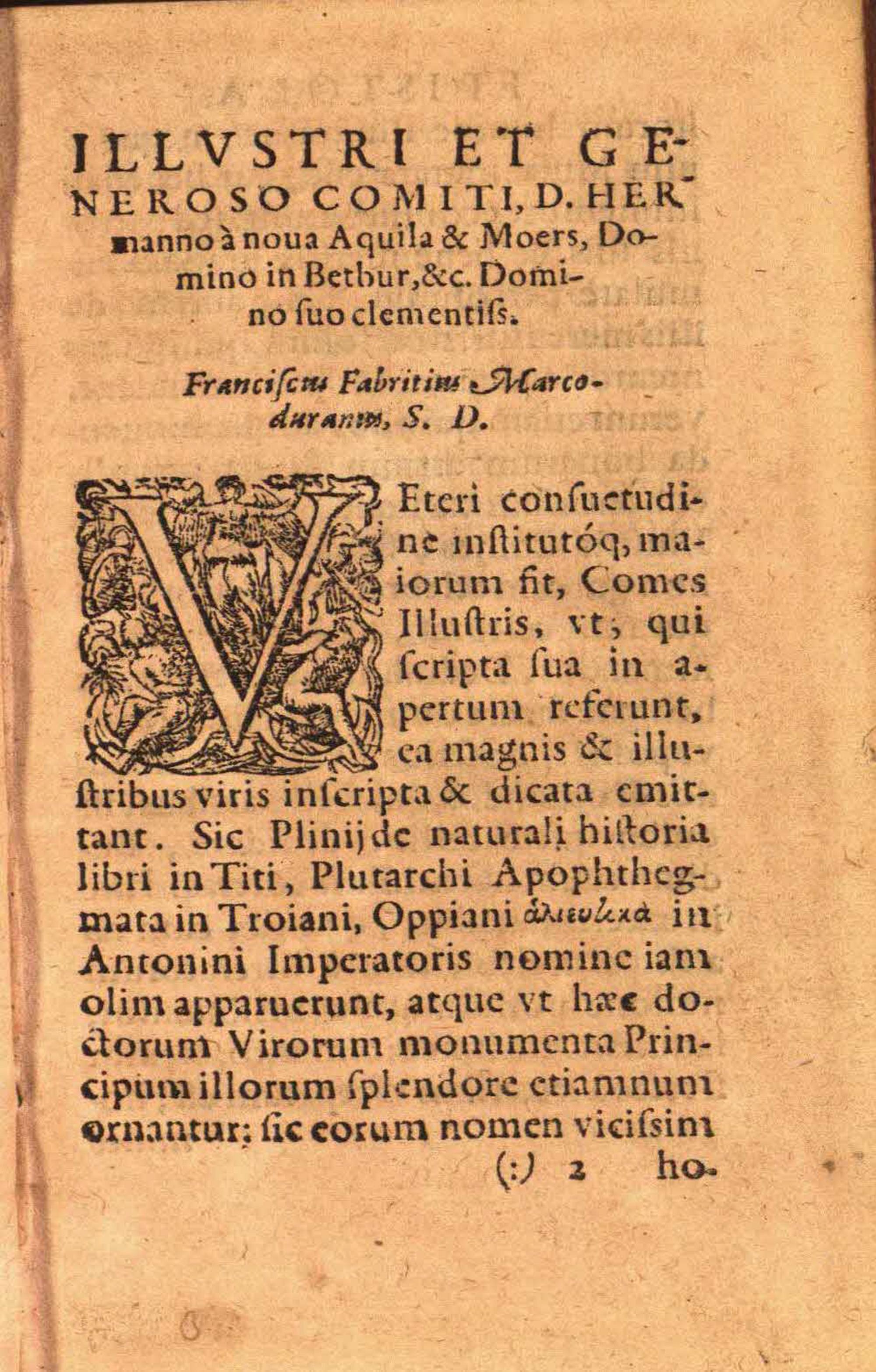 Illustri et gerneroso Comiti, D. Hermanno a nova Aquila ... Franciscus Fabritius...