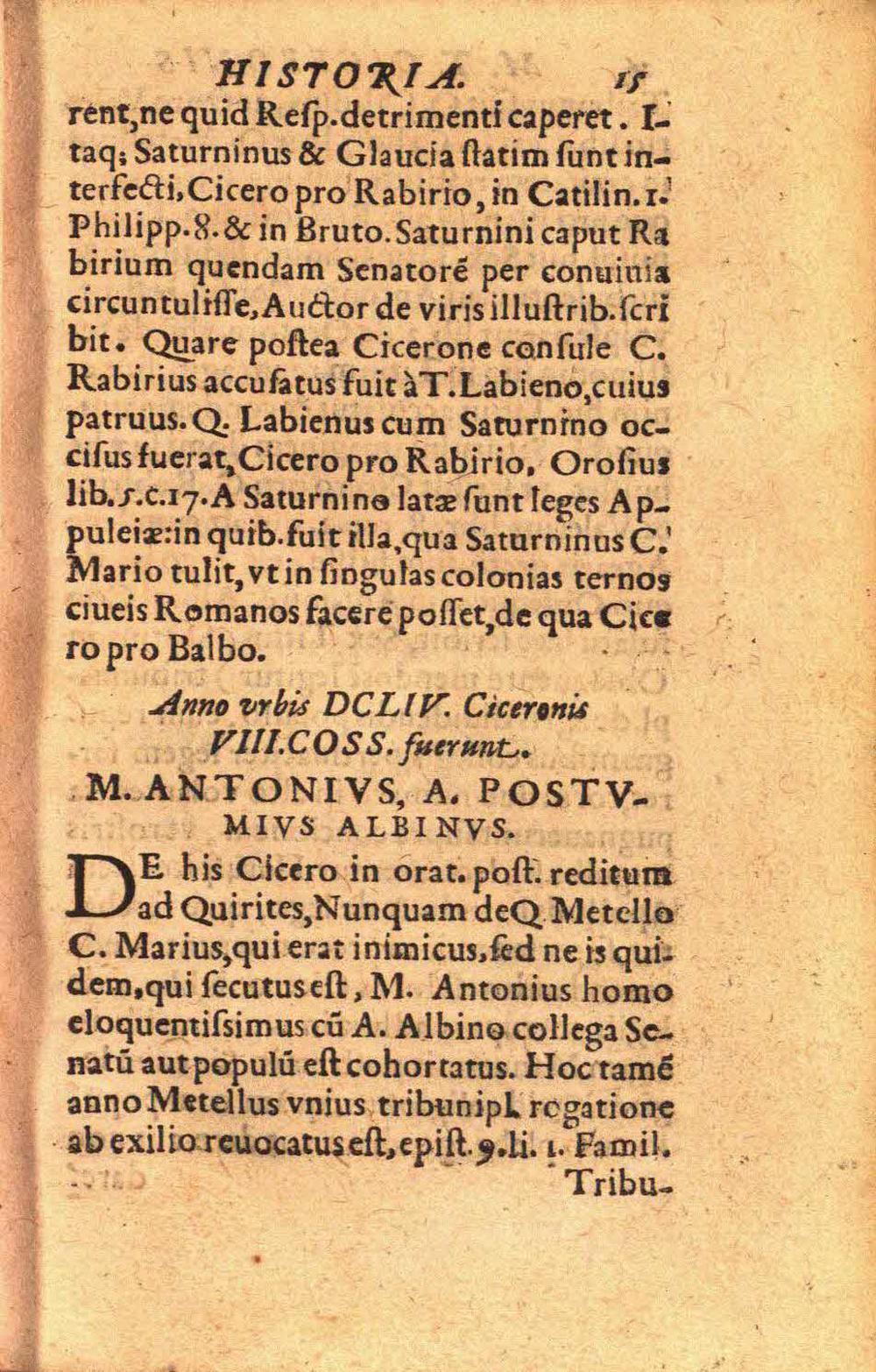 M. Tullii Ciceronis historia, per consules descripta, et in annos LXIV distincta