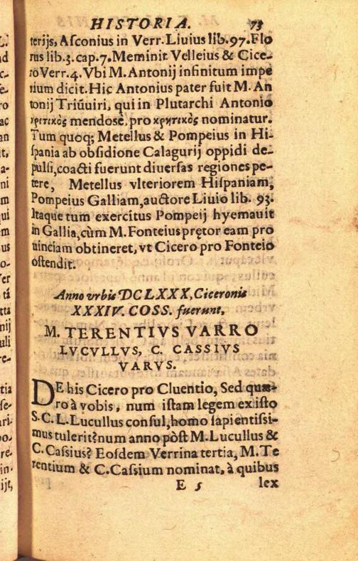 M. Tullii Ciceronis historia, per consules descripta, et in annos LXIV distincta / per Franc. Fabricium Marcoduranum
