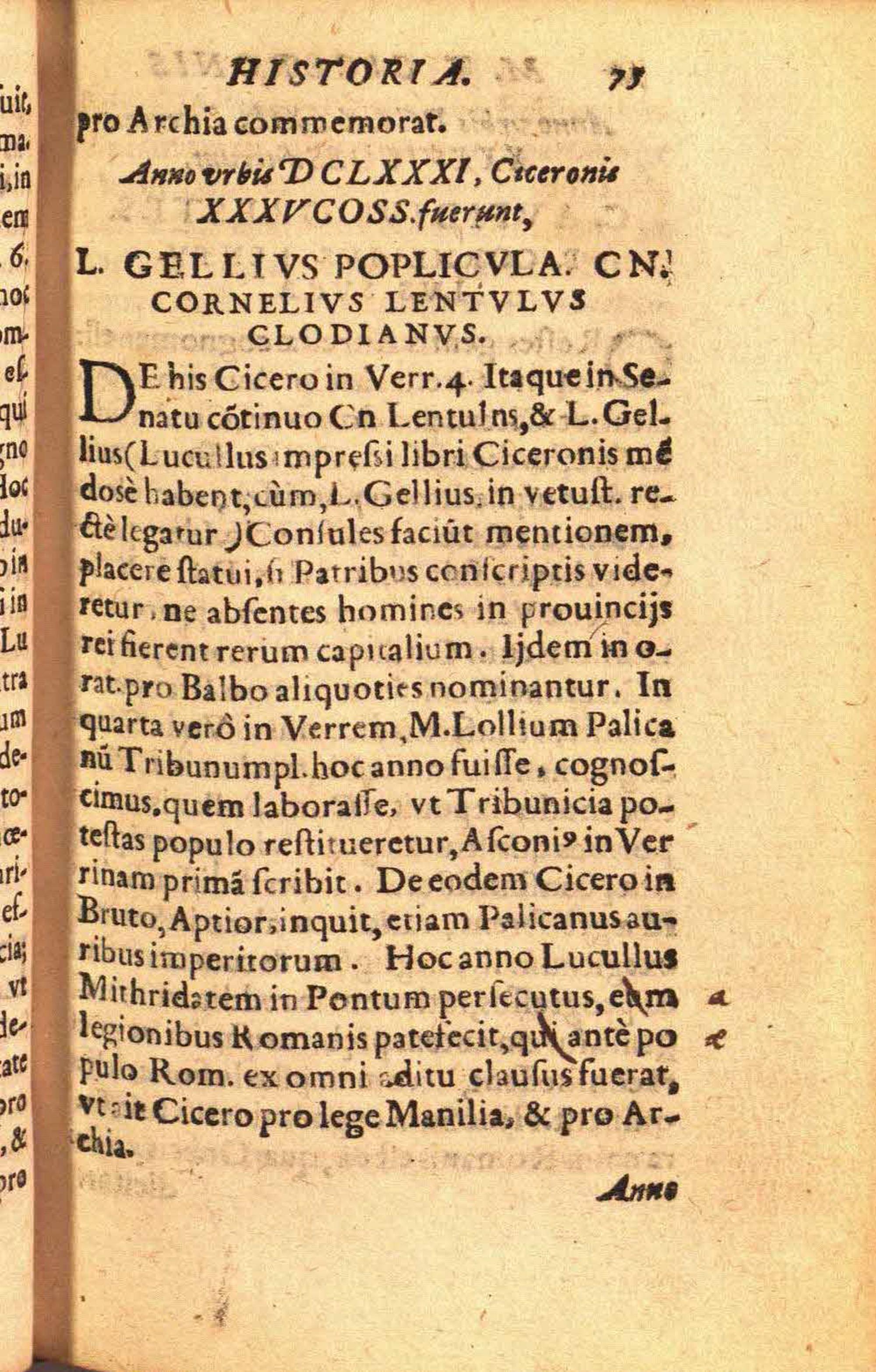 M. Tullii Ciceronis historia, per consules descripta, et in annos LXIV distincta