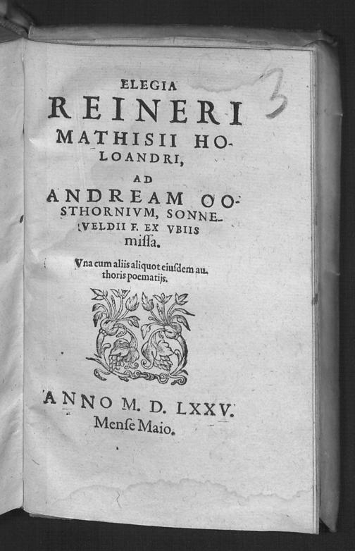 Elegia Reineri Mathisii Holoandri, ad Andream Oosthornium, Sonneveldii f. ex ubiis...