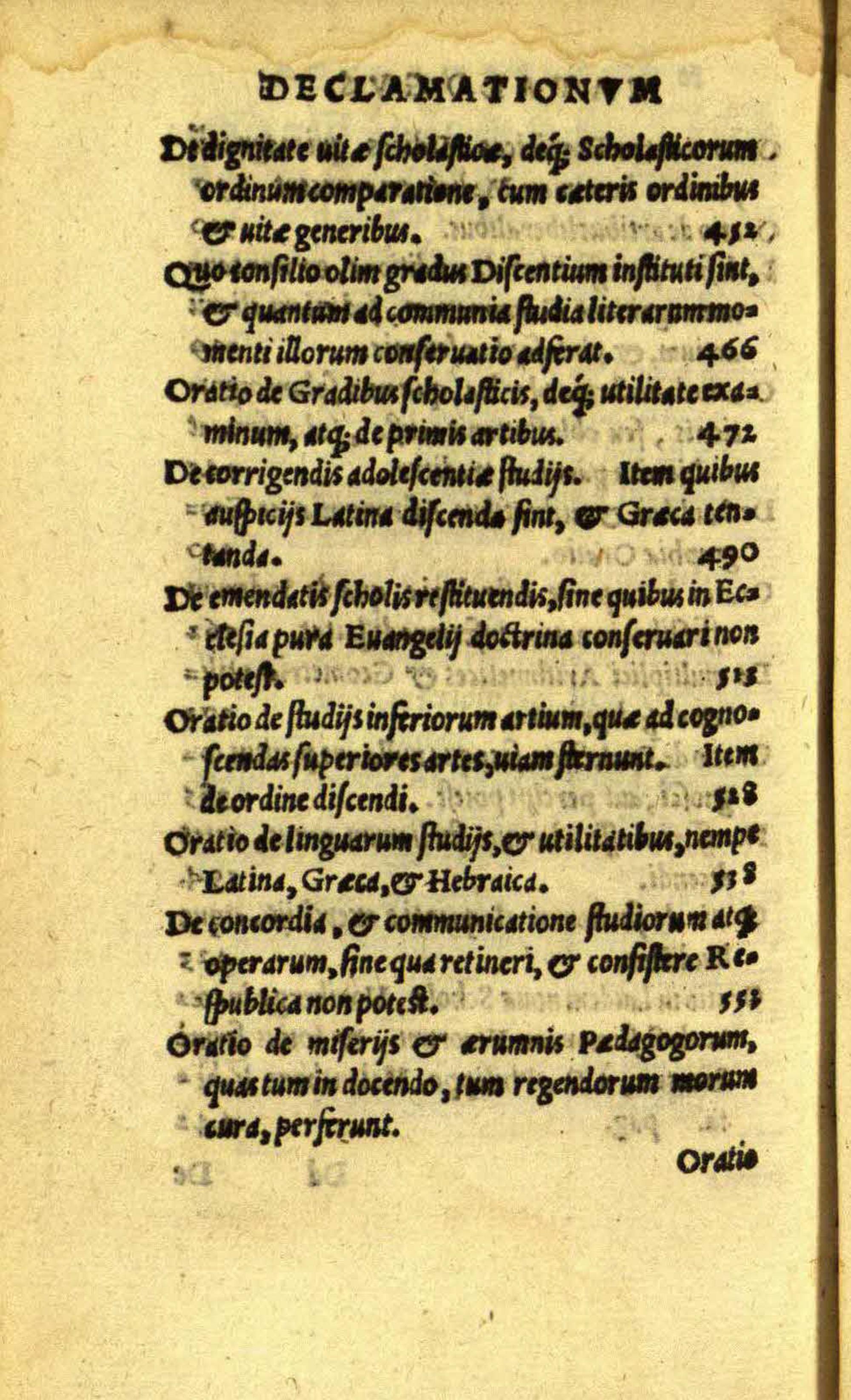 Primi tomi declamationum Philippi Melanthonis catalogus