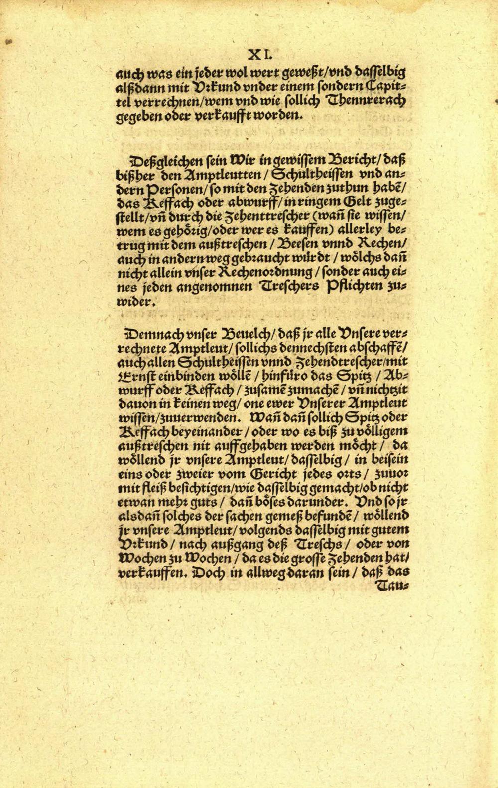 Instruction und Ordnung, wölchermassen sich hinfüro alle verrechnete Amptleut im Fürstenthumb Würtenberg, mit verleyhung unnd einsamlung der Zehendt, unnd aller anderer theilbarn Früchten, halten unnd in bessere Ordnung anstellen sollen, &c : [vom 29. Mai 1565] / [Urh.: Christoph Herzog von Wuerttemberg]