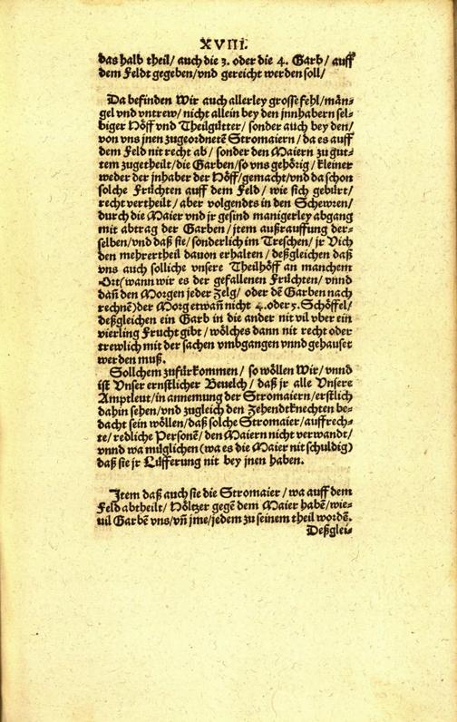 Instruction und Ordnung, wölchermassen sich hinfüro alle verrechnete Amptleut im Fürstenthumb Würtenberg, mit verleyhung unnd einsamlung der Zehendt, unnd aller anderer theilbarn Früchten, halten unnd in bessere Ordnung anstellen sollen, &c : [vom 29. Mai 1565] / [Urh.: Christoph Herzog von Wuerttemberg]