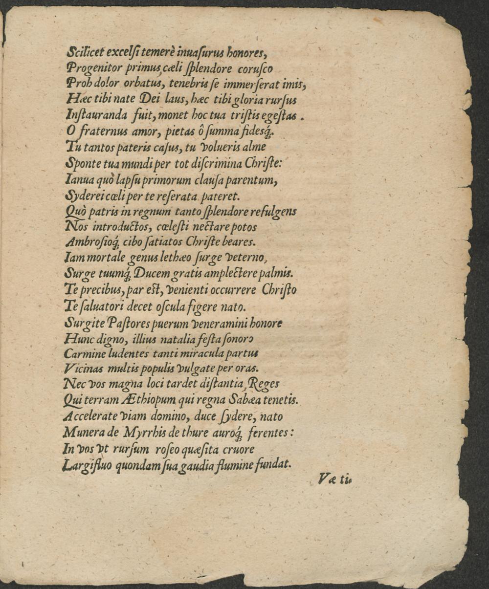 De salutifero partu Domini || IESV || Carmen || NOBILISSIMIS VI-||RIS, PIETATE, PRVDENTIA,|| eruditione, longoq́; rerum vsu prae-||stantissimis, D. Friderico à Goetzen,|| & D. Echardo à Stechavv, patronis || & consanguineis suis obseruan-||dis, Strenae loco missum / ab || HARDVICO A SCHRAS-||dorff.||