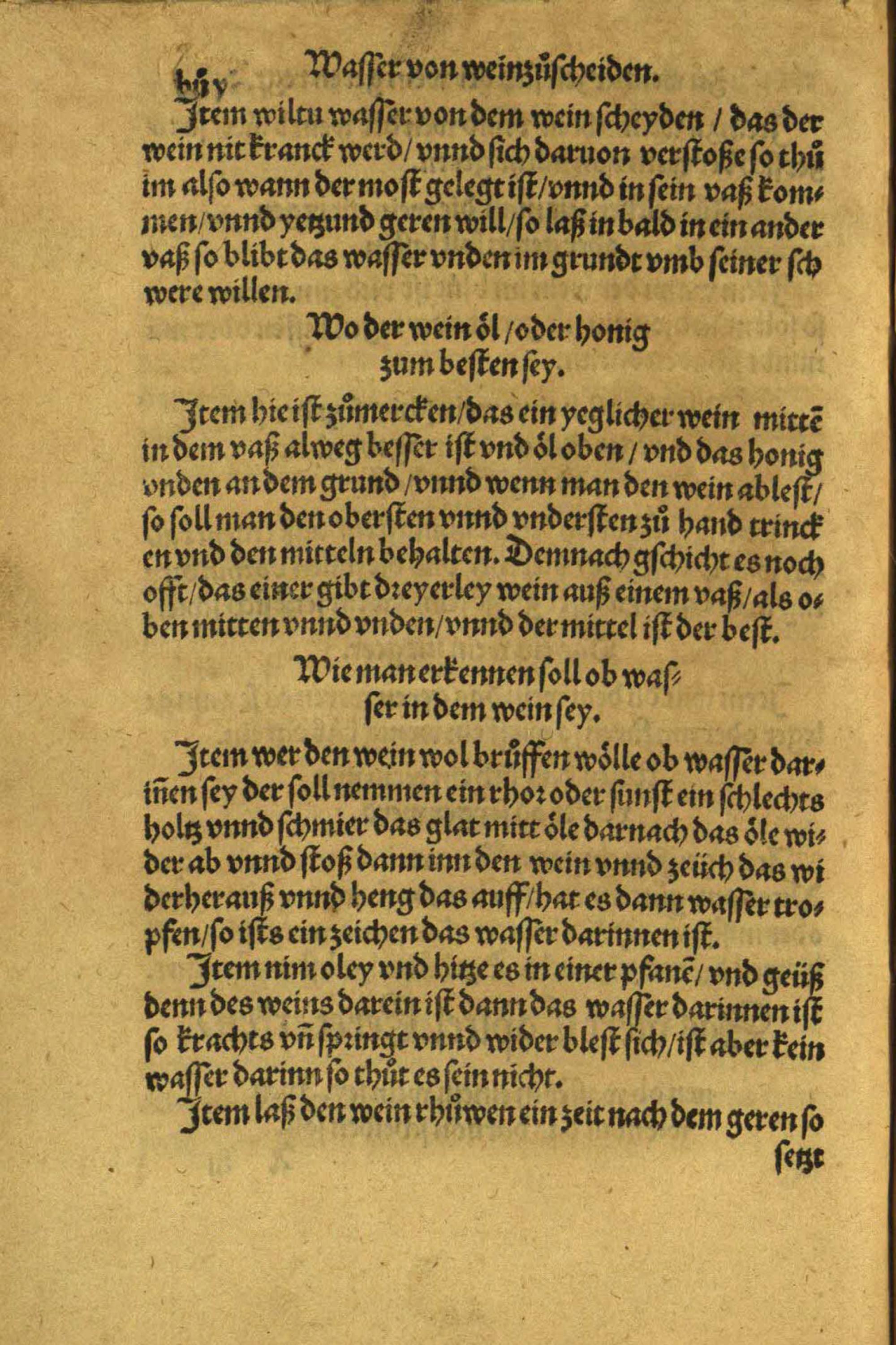 Das viert Capitel. Leret erkennen ob wasser in einem wein sey