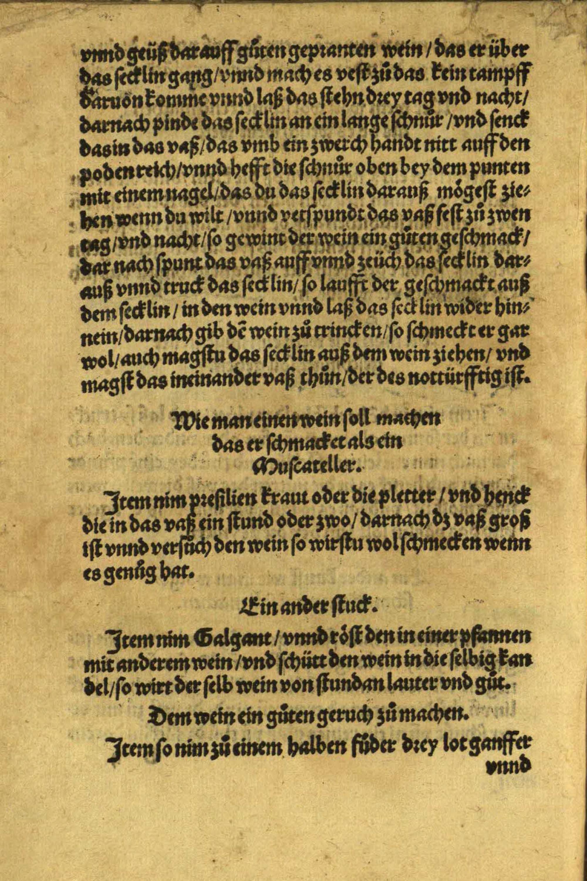 Das neundt Capitel. Leret wie man verdorben wein widerbringen soll auch wie man die wein bewaren soll das sye nit brechen unnd sich nit verkeren