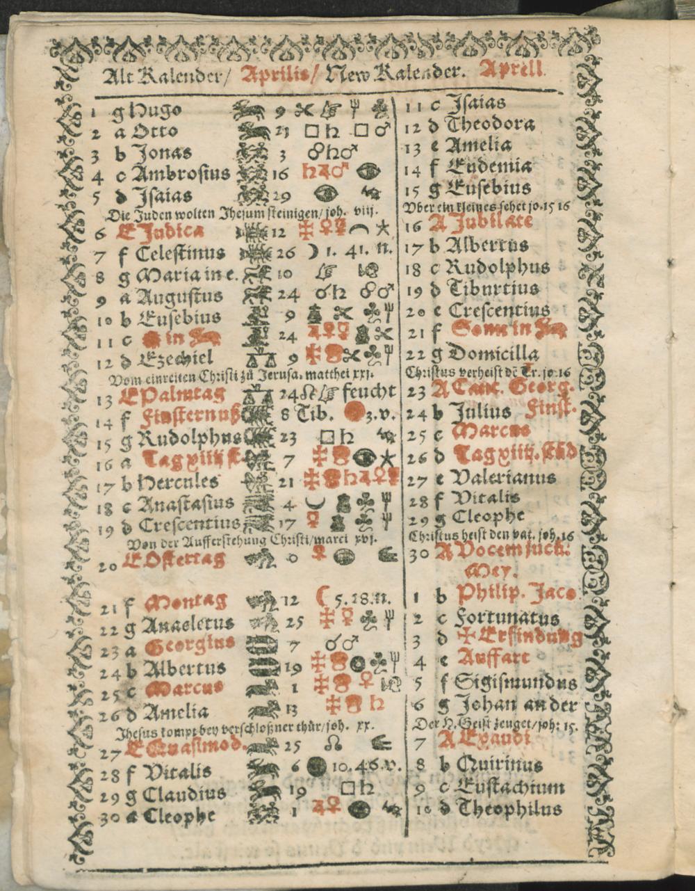 Alt Kalender/ Aprilis/ New Kalender. Aprell.