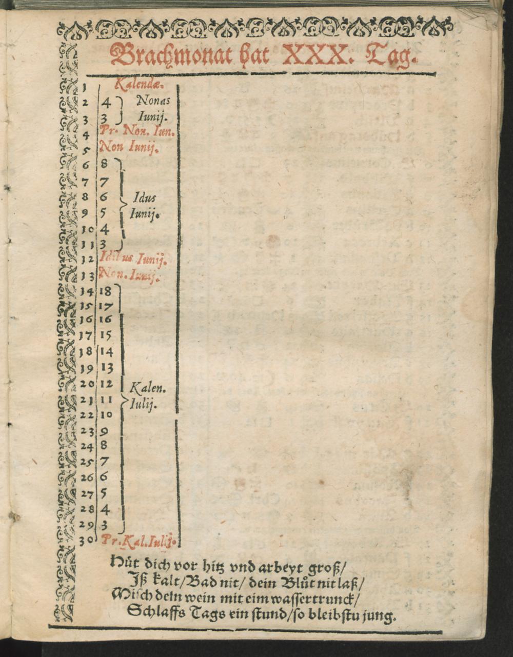 Alt Kalender. Junius/ New Kalen. Brachmonat.