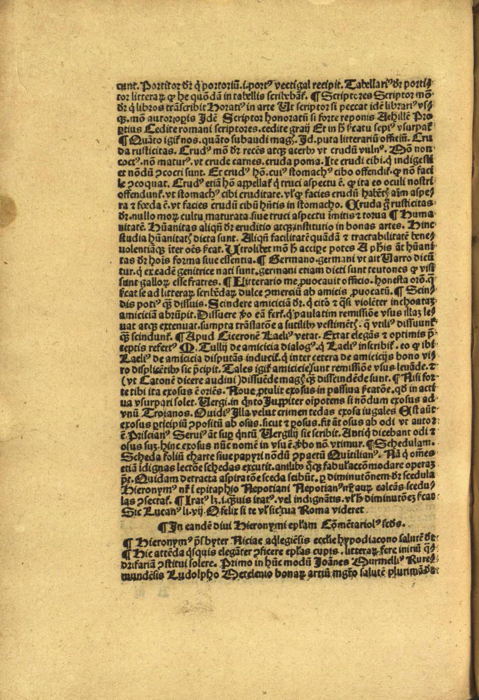 IN epistola[m] di//ui Hieronymi ad Nicia[m] Aqui//legiensis [!] ecclesie hypodiaconu[m] Comme[n]tarioli duo Joa[n]nis// Murmellij : in quibus pleraq[ue] traduntur scribendis elegan//ter epistolis idonea.// Ex ep[isto]lis eiusde[m] diui Hieronymi fideliter selecte Or[ati]ones// Bonarum artium professori Io. Mur.// Vualtherus Tangherius Busciducen[sis] ...