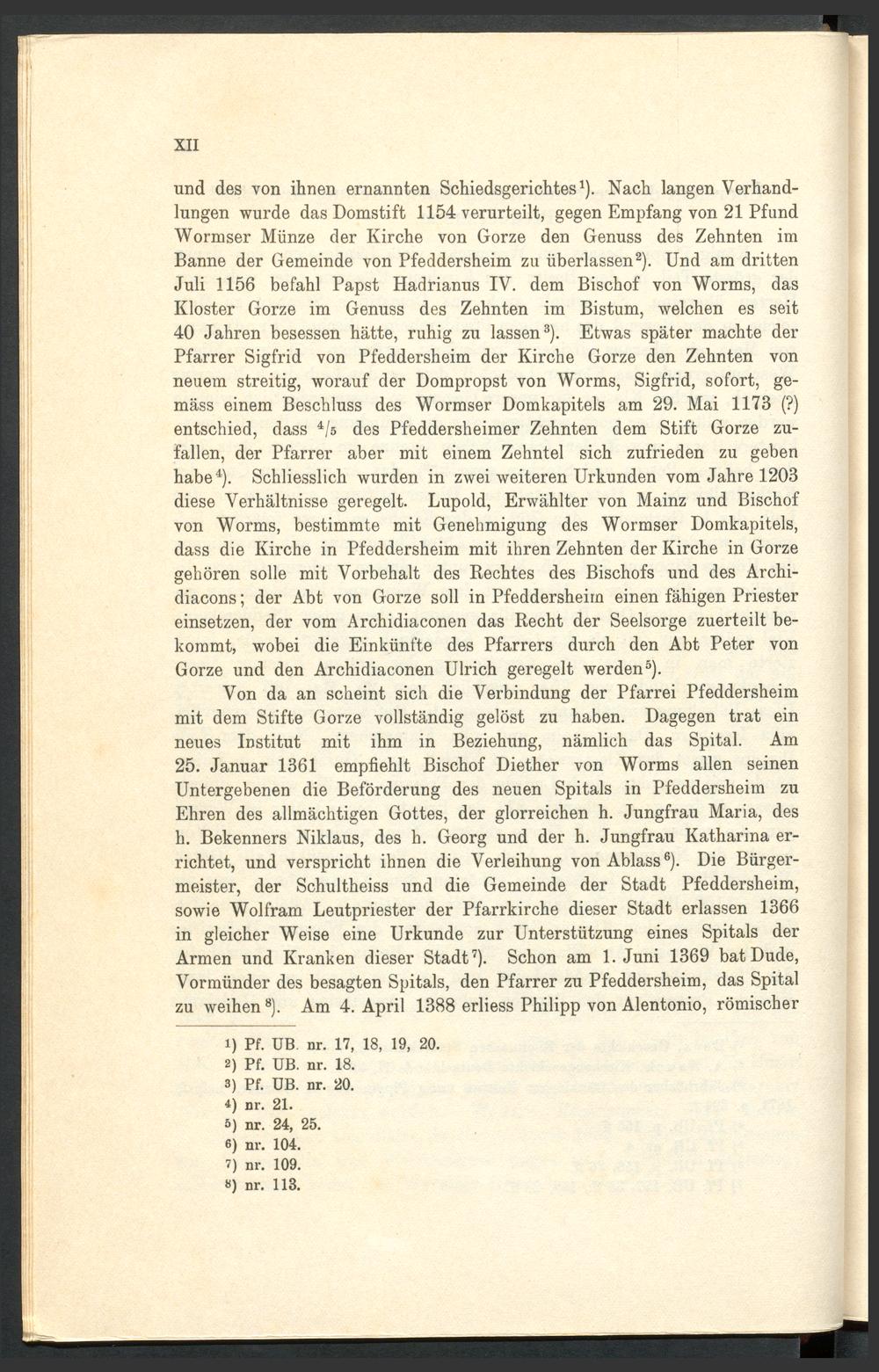 Urkundenbuch der früheren freien Reichsstadt Pfeddersheim