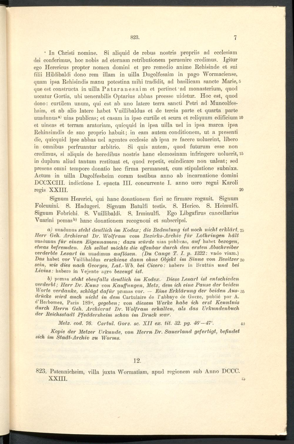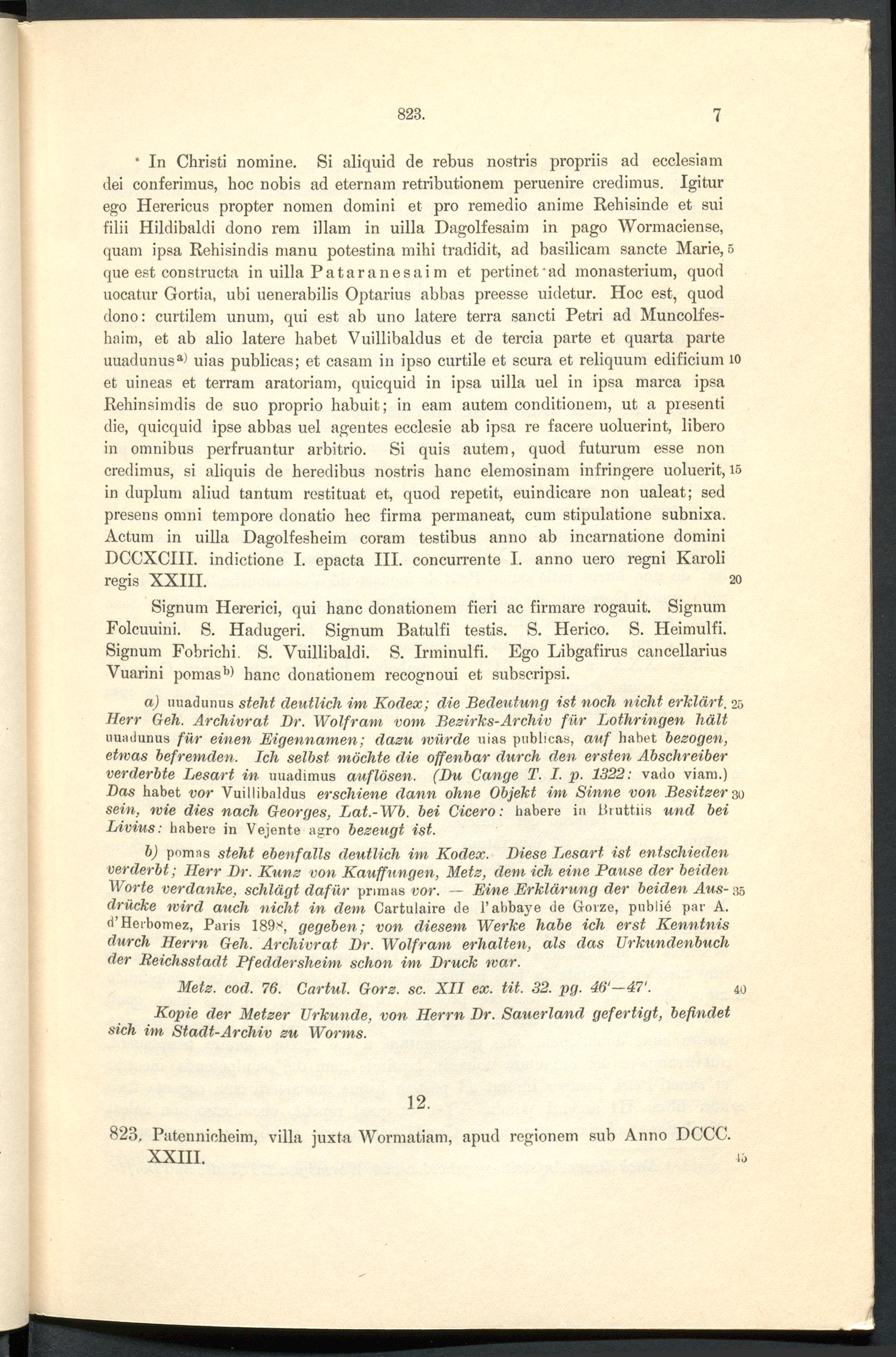 Verzeichnis der Urkunden.