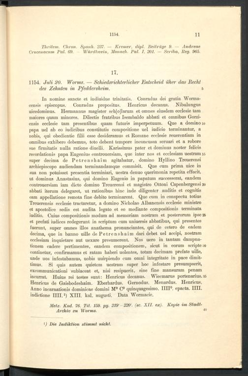 Urkundenbuch der früheren freien Reichsstadt Pfeddersheim / ... hrsg. durch Daniel Bonin